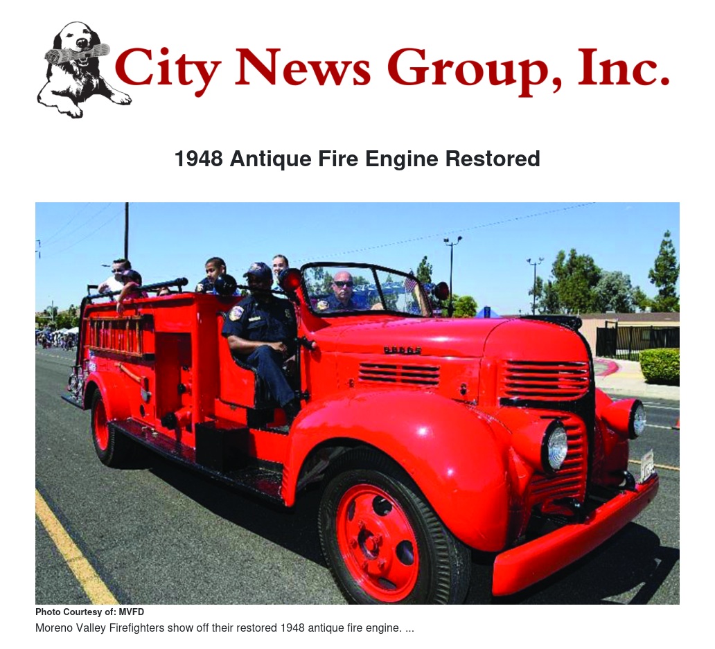 The City’s Fleet Maintenance staff and Moreno Valley firefighters have worked to restore a 1948 Dodge antique fire truck to all of its glory, providing a glimpse into Moreno Valley’s history before it was incorporated.