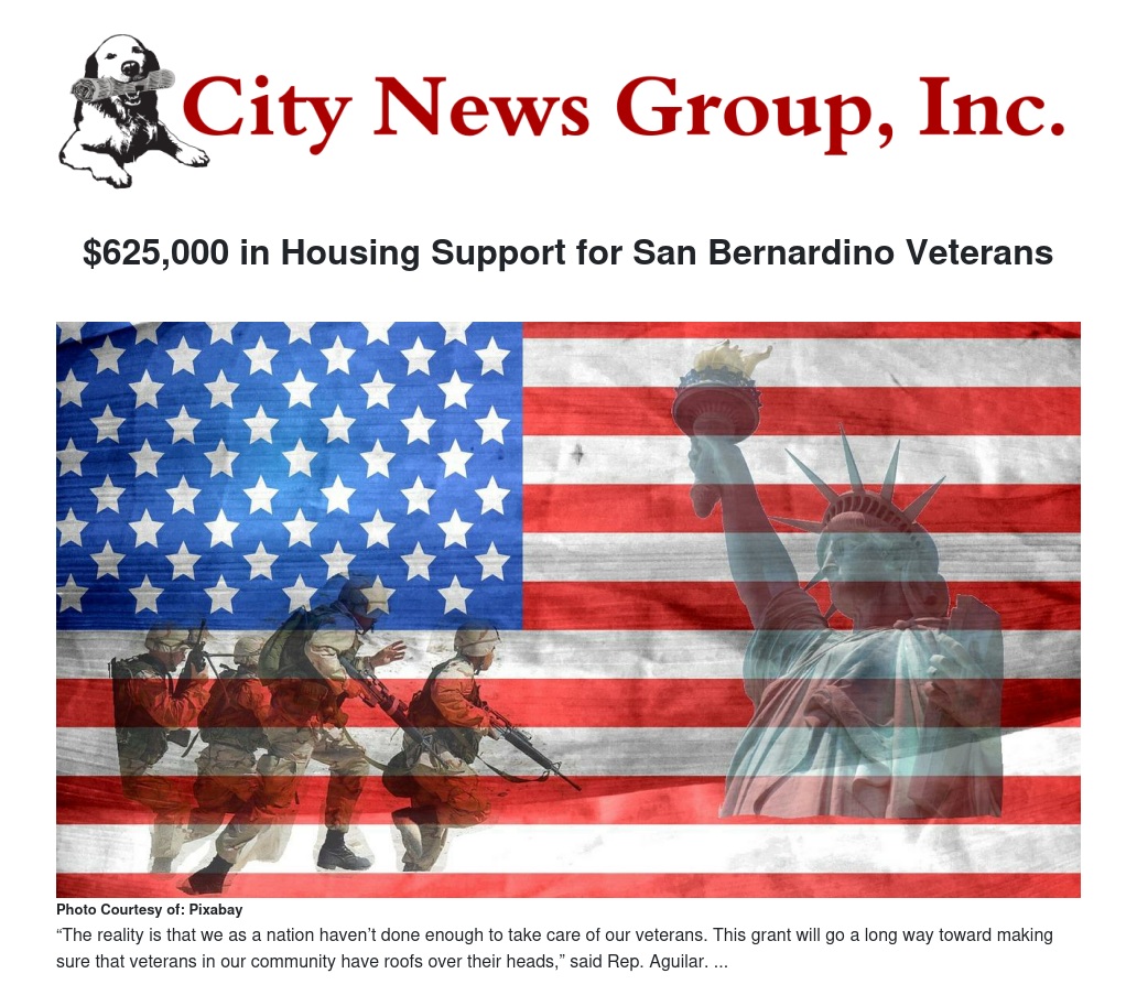 Pete Aguilar (D-San Bernardino) announced that Knowledge and Education for Your Success, Inc. (KEYS), a nonprofit organization affiliated with the San Bernardino Housing Authority, received $625,325 in renewal funding for the fifth consecutive year from the Department of Veterans Affairs through the Supportive Services for Veteran Families (SSVF) Program. The program aims to provide services to low-income veterans and their families who are living in, or transitioning to, permanent housing.