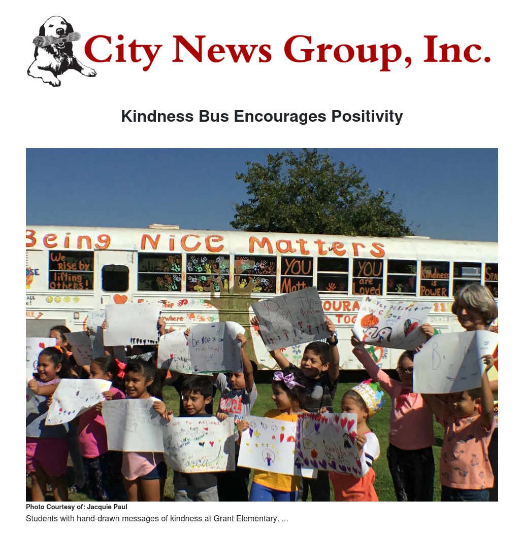 The CJUSD Kindness Bus has been traveling through the district this month to spread a message of kindness, inclusion and acceptance. This marks the third year the district’s Transportation Department has brought this special bus to our community.