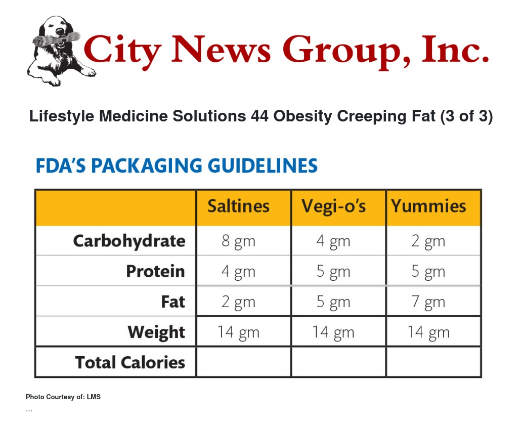 If you picked Food #3, you were correct. Although the weight was the same for all three foods, Food #3 carries a higher proportion of that weight as fat. As a result, a serving of Food #3 contains 91 calories while Food #2 carries 81 and Food #1 only 66 calories.