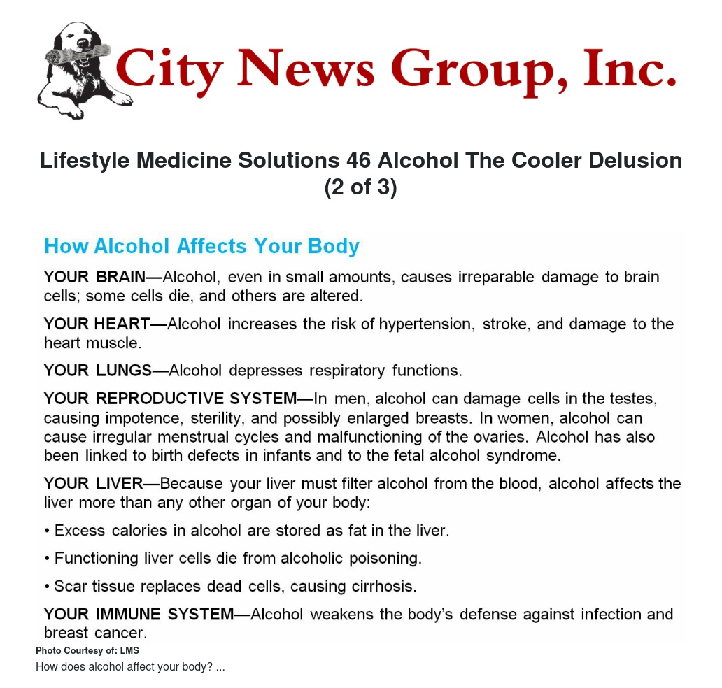 REVIEW: In our last health column on the danger of alcohol use, we focused on the successful marketing of alcohol that is made available in the form of fruit juices. These coolers come in a rainbow of colors. They taste sweet and fizzy, where the alcohol taste is disguised. And they are most attractive to younger people. And yet, these drinks contain more alcohol than a beer or a glass of wine.