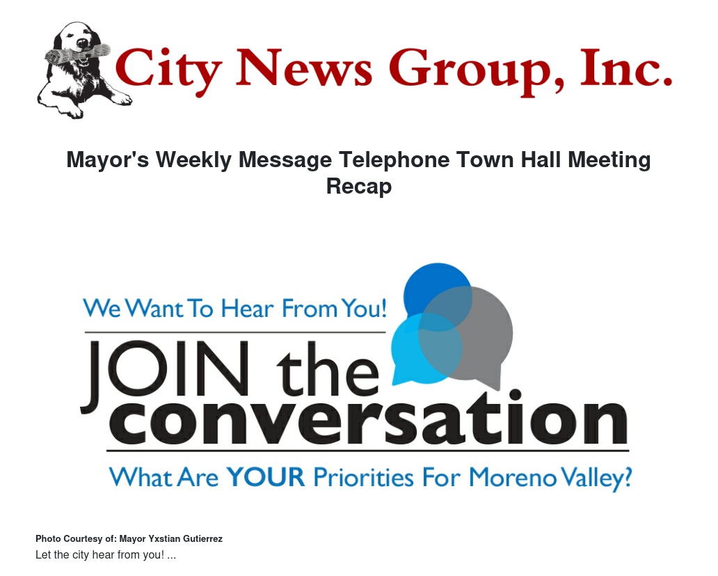 Dear Moreno Valley Residents,