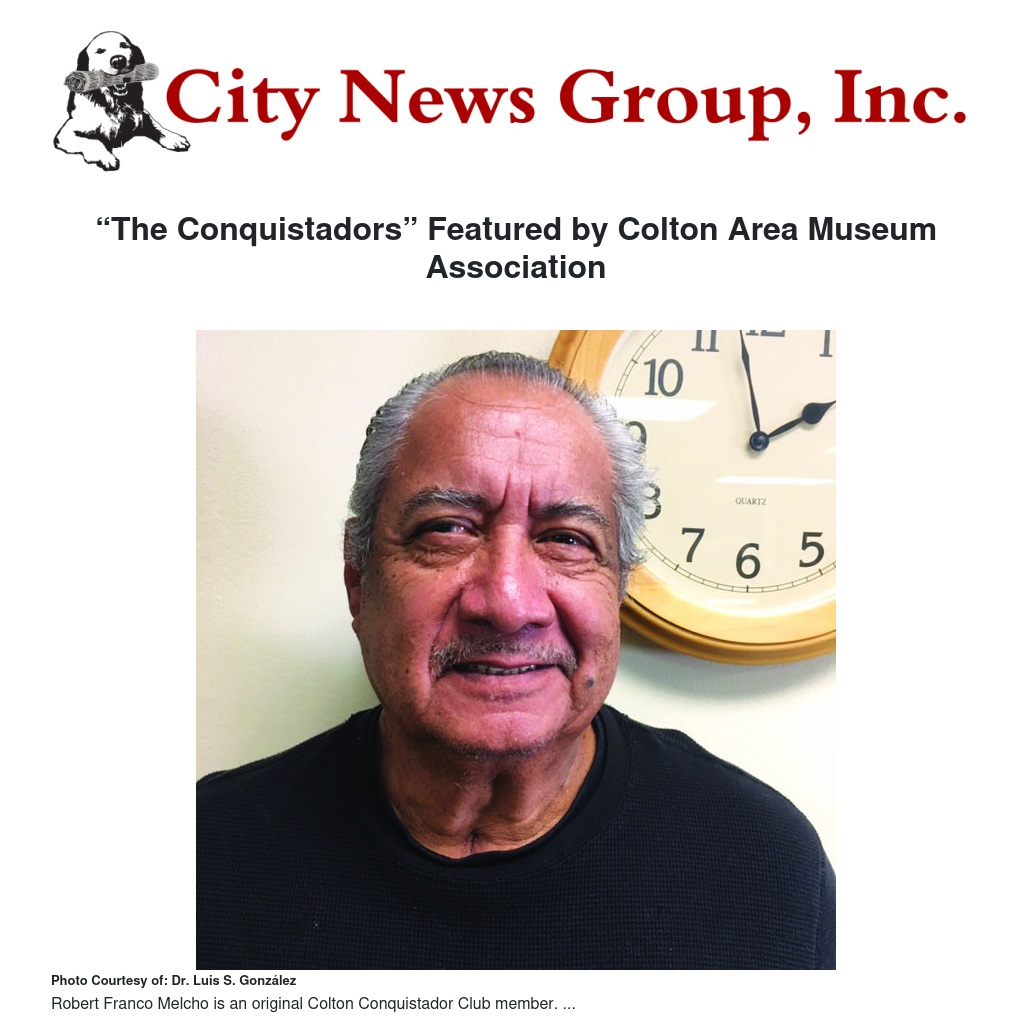 On Saturday, January 11, at 2:30pm, the Colton Area Museum Association (CAMA) guest speaker program will feature former President of the Colton Conquistadors Club, Mr. Robert Franco Melchor. Born and raised in Colton, Mr. Melchor has made it a life-long goal to promote and perpetuate the memory of this South Colton youth organization.