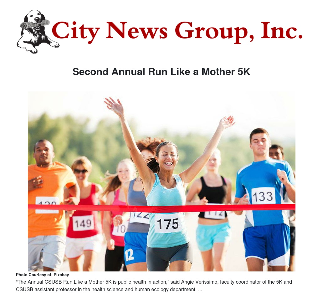 “The Annual CSUSB Run Like a Mother 5K is public health in action,” said Angie Verissimo, faculty coordinator of the 5K and CSUSB assistant professor in the health science and human ecology department. “It is a prime example of bringing community members and our CSUSB community together all while raising consciousness on the pressing concerns that our communities face and celebrating those community organizations that strive to address these concerns.”