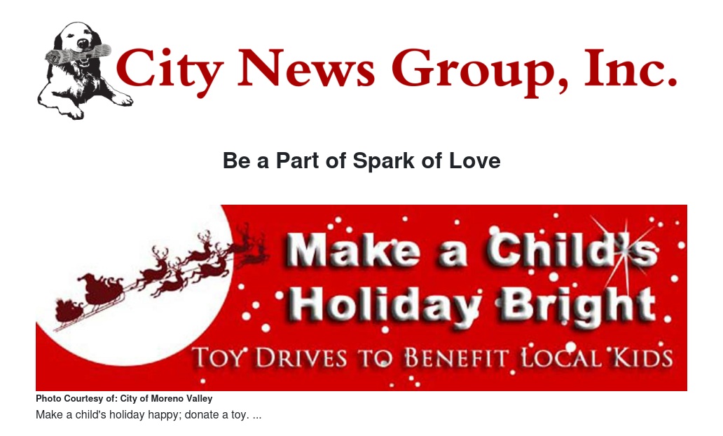 Operation Holiday Cheer includes programs designed to brighten the lives of children and families in Moreno Valley that are experiencing an economically challenging time. Donations and volunteers needed. Individuals or groups that are interested in dropping off toys, assisting financially, or volunteering, please contact Community Services Officer Manier at 951-486-6716.
