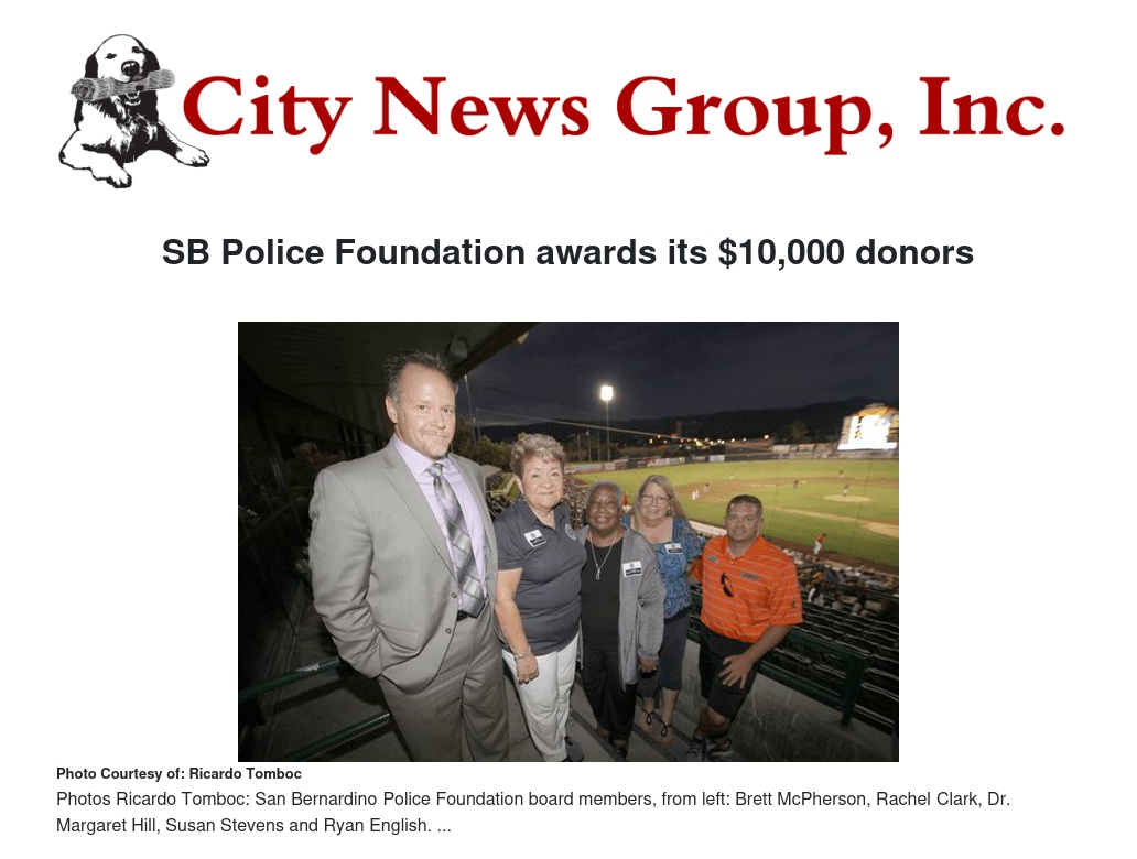 According to the SBPF website, “The Foundation’s mission is to enhance public safety in San Bernardino through support of the San Bernardino Police Department by supporting and funding safety, technology, crime fighting, and community programs.”