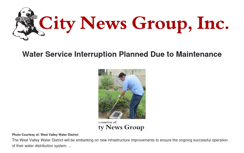 RIALTO>> As a new year often brings fresh beginnings, the West Valley Water District will be embarking on new infrastructure improvements to ensure the ongoing successful operation of our water distribution system with a number of water main valve replacements.