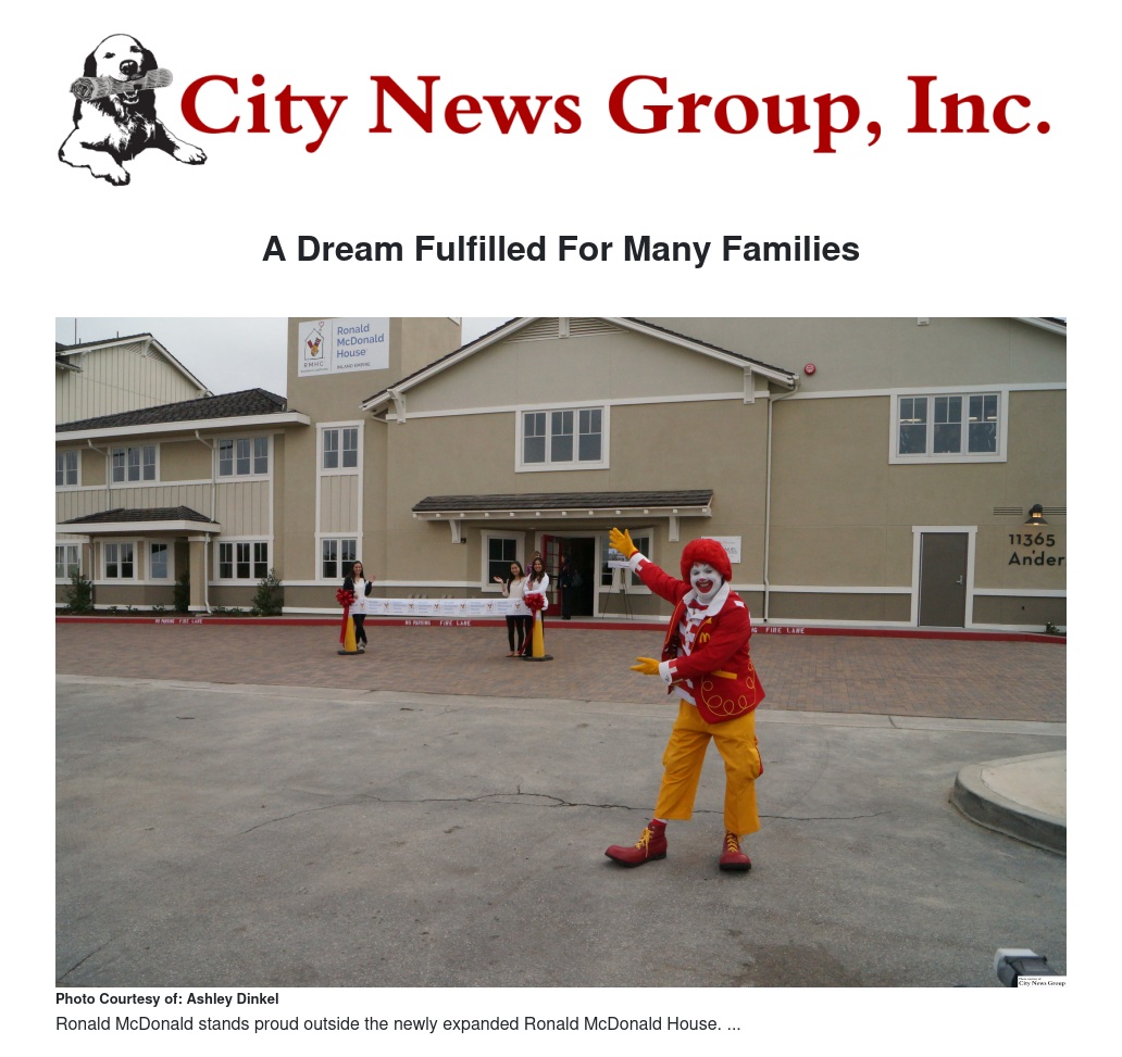 LOMA LINDA>> The Ronald McDonald House is a home away from home for these families of critically ill children. Located across the street from Loma Linda University Children’s Hospital, the Ronald McDonald House is the closest accommodation for families.