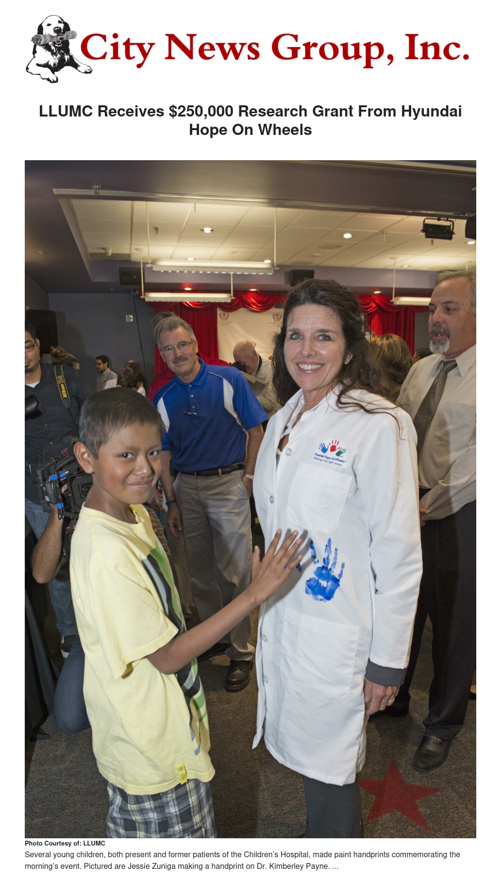 LLUMC Receives $250,000 Research Grant From Hyundai Hope On Wheels