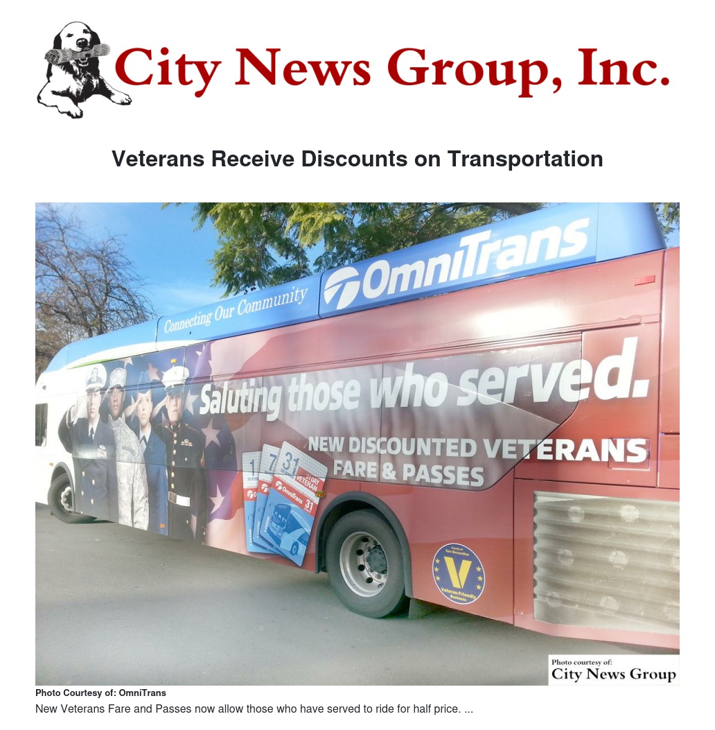 Omnitrans joins over 1,000 San Bernardino County businesses offering discounts to veterans as part of the county's Veteran Friendly Business and ID card program, where veterans can get discounts at participating businesses with the county-issued IDs.