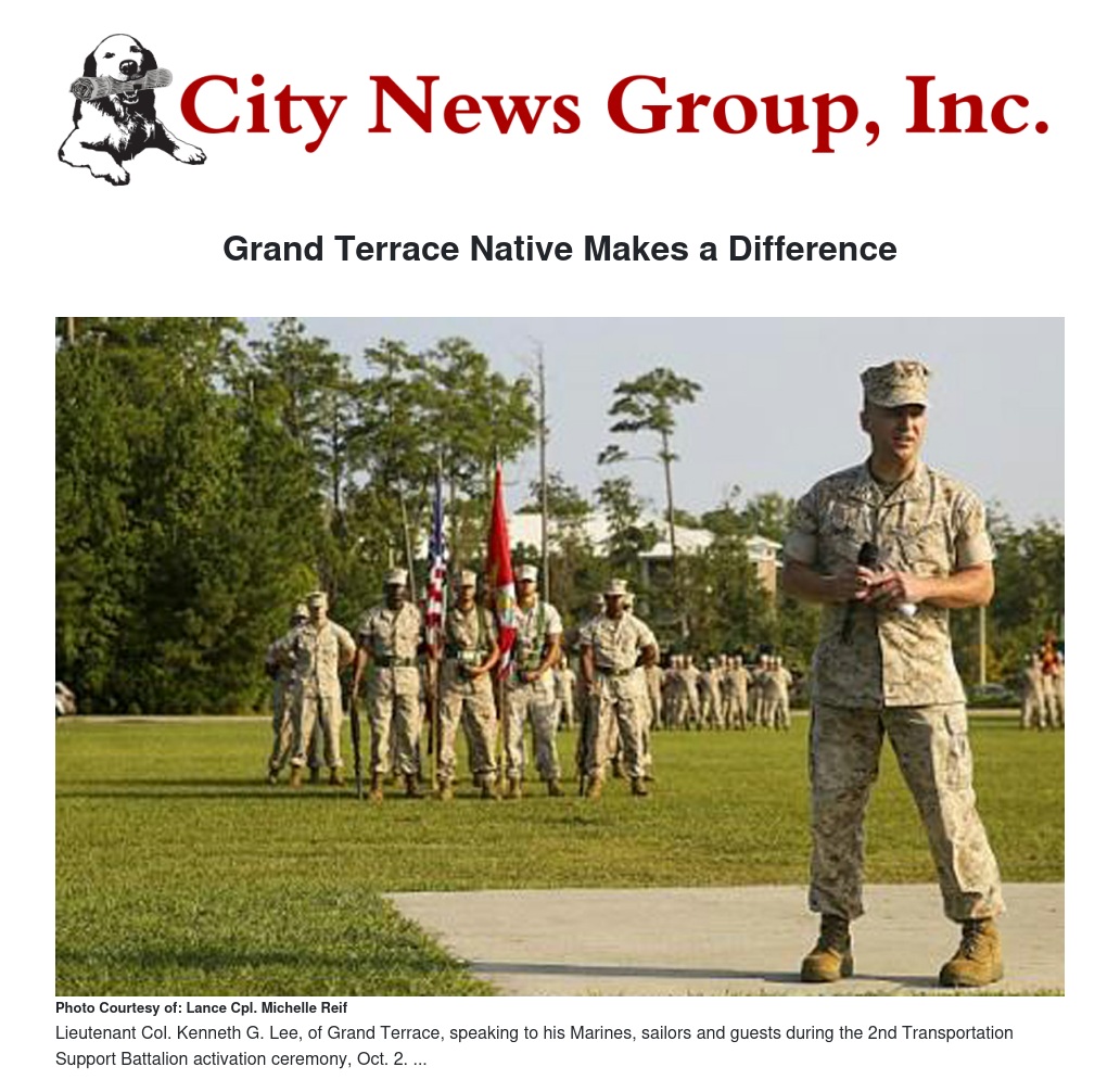 Grand Terrace native, Lieutenant Col. Kenneth G. Lee, is currently serving as the battalion commander of the 2nd Transportation Support Battalion, Combat Logistics Regiment 2, 2nd Marine Logistics Group which unfurled the unit colors during an activation ceremony at Soifert Field aboard Marine Corps Base Camp Lejeune, North Carolina, Oct. 2.