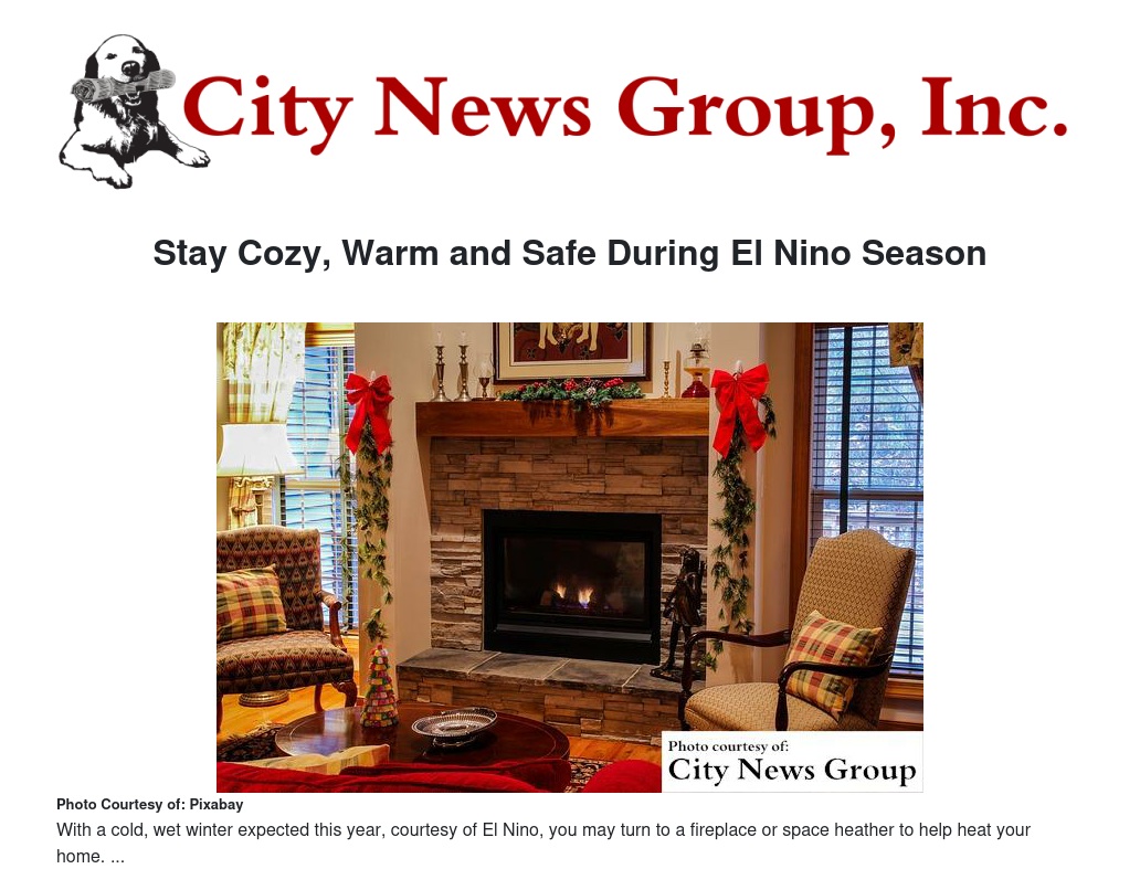 With a cold, wet winter expected this year, courtesy of El Nino, you may turn to a fireplace or space heather to help heat your home. Unfortunately, accidents involving fireplaces and heating equipment are a major cause of preventable home fires. County Fire urges residents to keep safe while they snuggle up this winter.