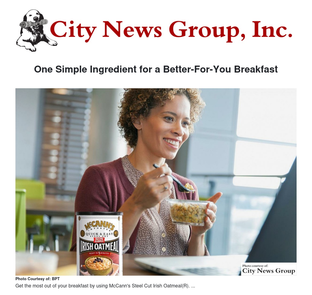 Oatmeal breakfast smoothie: Smoothies are the perfect breakfast solution for a busy morning. Add McCann's Steel Cut Irish Oatmeal(R) before you blend to provide a delicious, nutty taste. With no processing or artificial ingredients, these certified non-GMO oats add rich texture and the benefits of 100 percent whole grain.