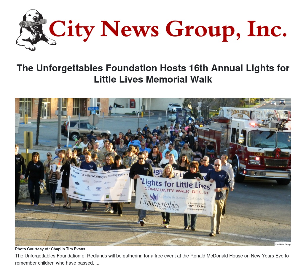 For the past 16 years The Unforgettables Foundation has helped the Inland Empire and Coachella Valley to close the year on an undeniably emphatic and caring note! Because leaders say that "every child is truly unforgettable in life or in death": and for almost a generation big crowds have shown their solidarity by gathering on a very busy day.