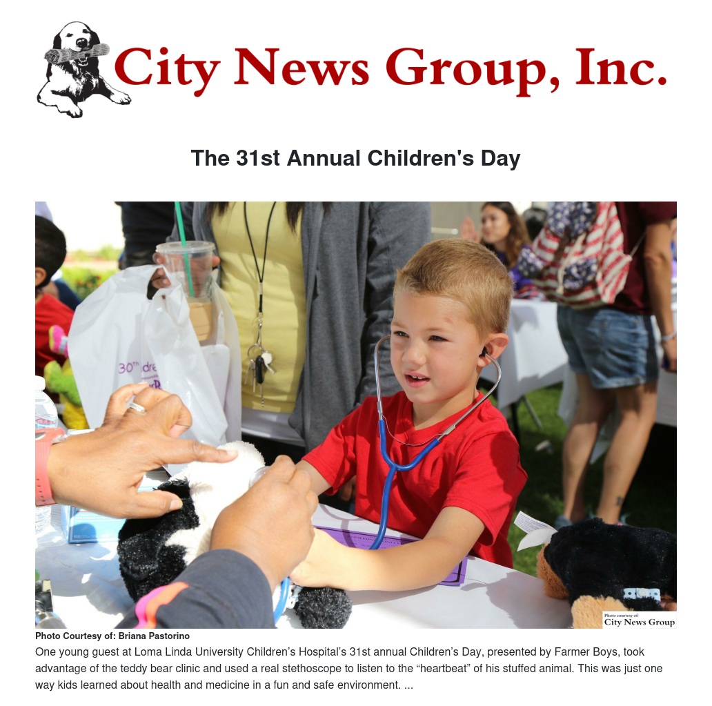 LOMA LINDA >> Over 1,400 kids and their chaperones from the community filled the campus lawn during the 31st annual Children’s Day, presented by Farmer Boys, at Loma Linda University Children’s Hospital (LLUCH)on Wednesday, May 4.