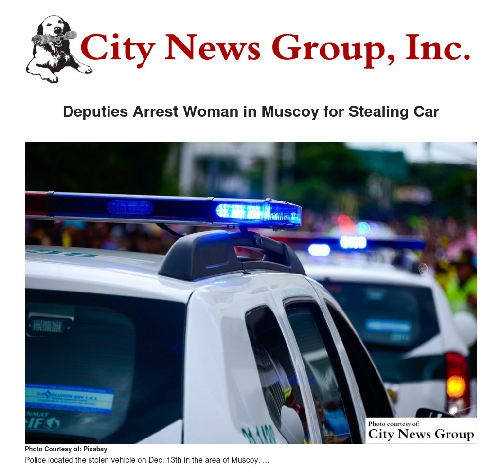 Deputies Arrest Woman in Muscoy for Stealing Car