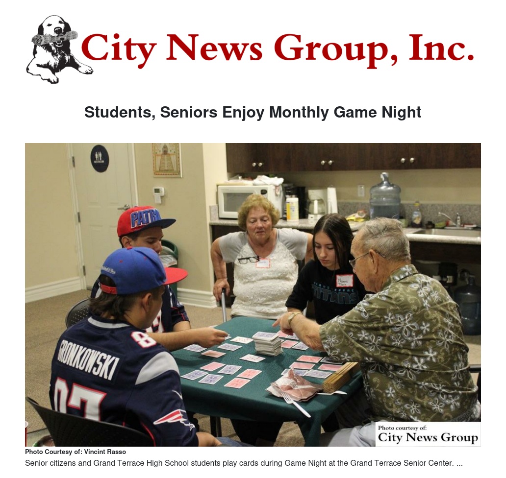 GRAND TERRACE>> Some senior citizens and Grand Terrace High School students came together Sept. 10 for a night of games, laughter and community at the Grand Terrace Senior Center.