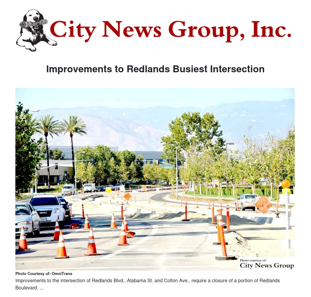 The project realigned an unorthodox and difficult merger of Colton Avenue and Redlands Boulevard, creating a signalized T-intersection just east of the Redlands Boulevard/Alabama Street intersection.