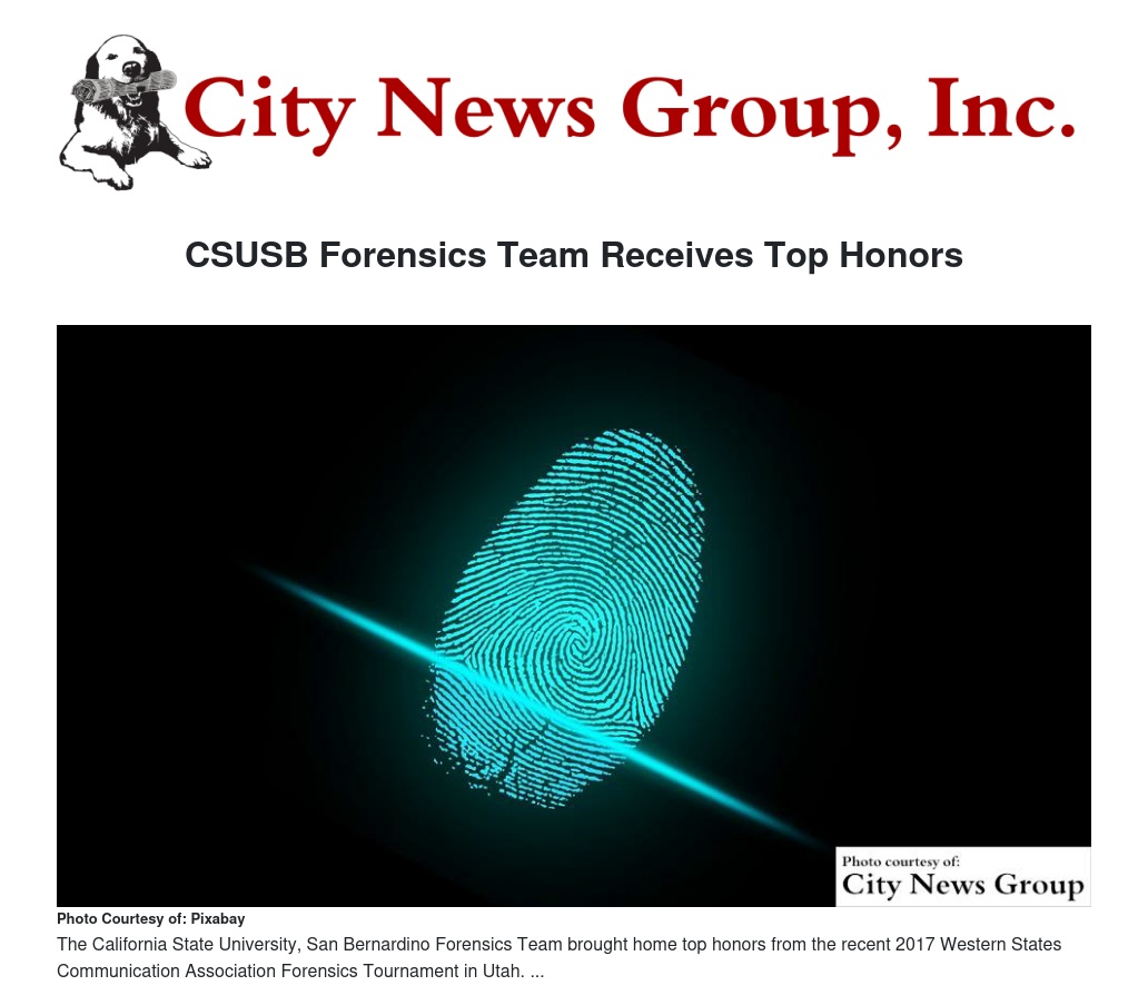 SAN BERNARDINO>> The California State University, San Bernardino Forensics Team brought home top honors from the recent 2017 Western States Communication Association Forensics Tournament in Utah, marking the university's return to this competition in more than 20 years.