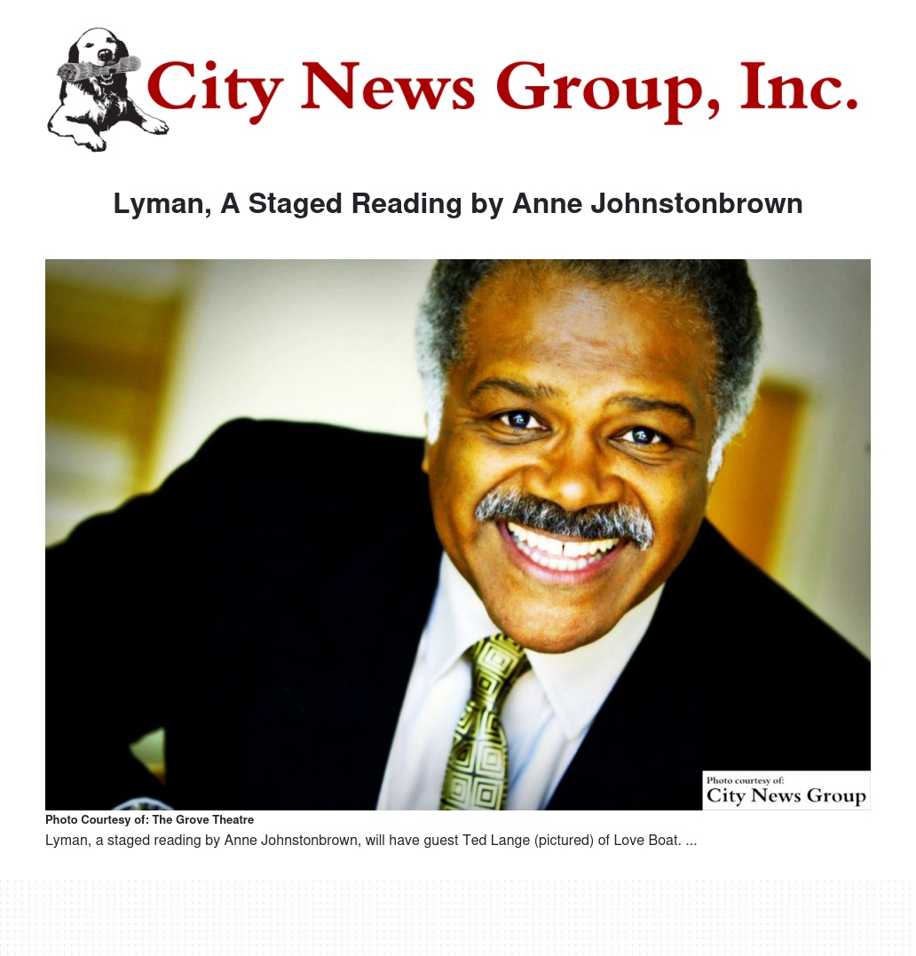 The Grove Theatre is proud to announce Lyman, a staged reading by Anne Johnstonbrown, and guest starring Ted Lange of Love Boat. This play, which takes place on May 15 at 6:00 p.m., tells the story of a man named Lyman, the choices he makes, and how they impact his Destiny, as well as the Destinies of those around him. Each scene represents a different Destiny of Lyman Liri based on a choice he makes at a universal point in time. The choice is always told from the perspective of someone who knew him.