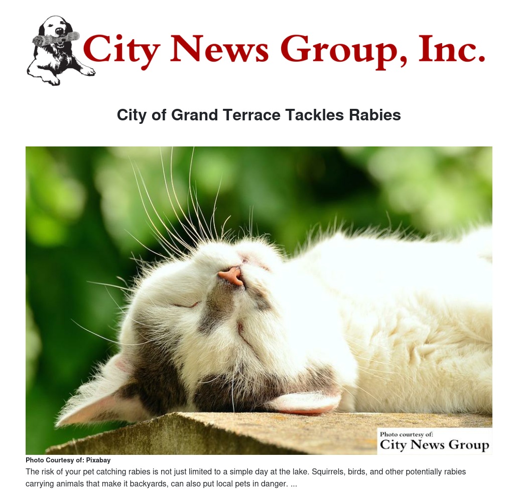 To combat the danger of rabies, the City of Grand Terrace will be hosting a low cost rabies vaccination clinic at Grand Terrace City Hall.