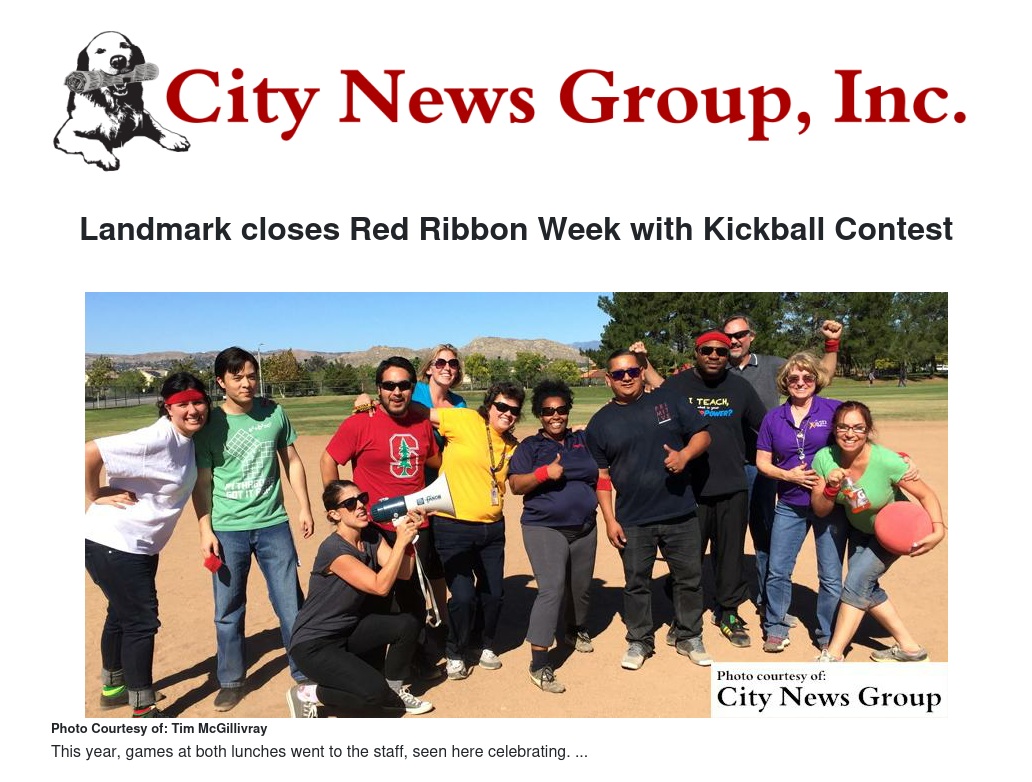 Red Ribbon Week at Landmark Middle School isn’t over until the last pitch of the annual kickball matchup between staff and students.