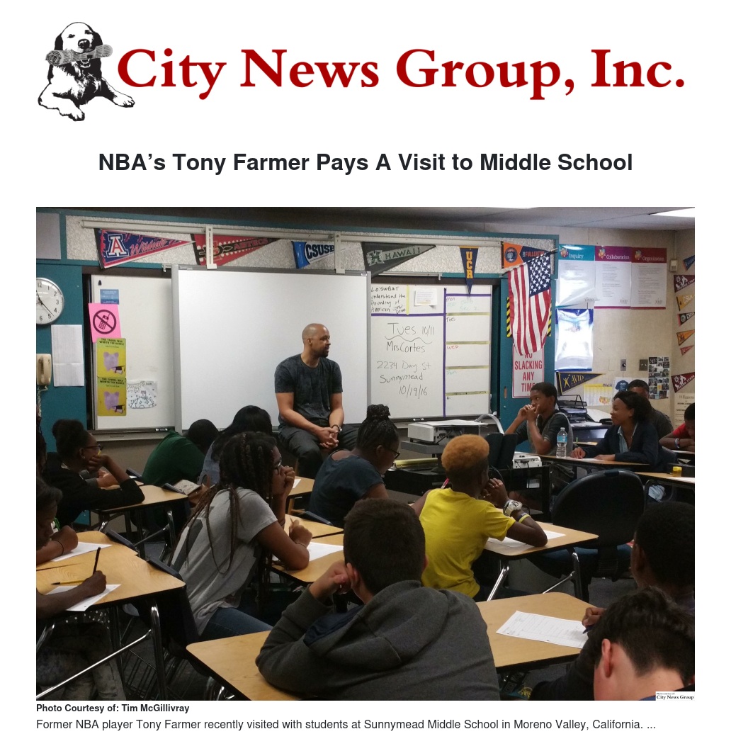 NBA’s Tony Farmer Pays A Visit to Middle School