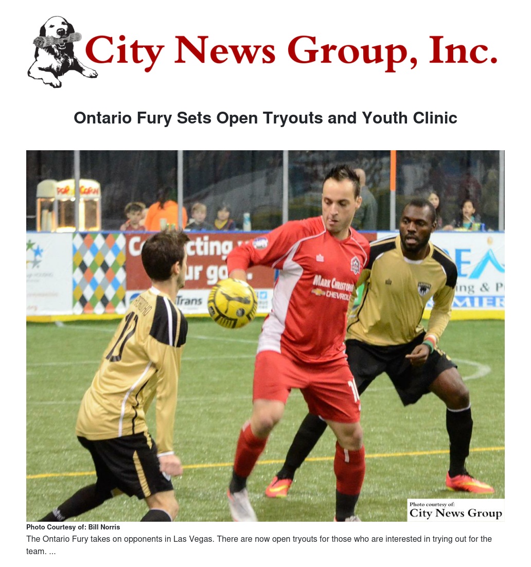 “The Inland Empire and Southern California is full of talented soccer players who will be well suited for the indoor game,” Lilavois said. “We hope to find the next great indoor player who can help the Fury this season and beyond.”