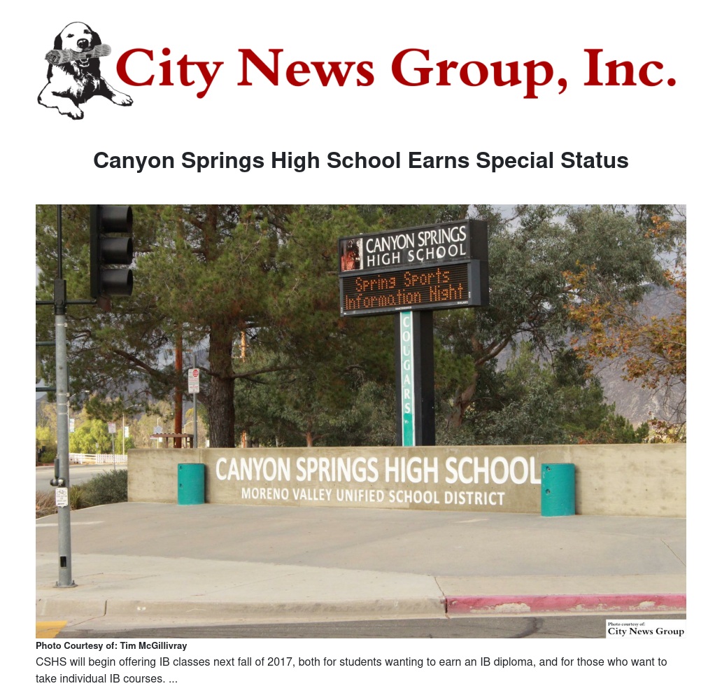 MORENO VALLEY>> It has been several years of work in the making, but Canyon Springs High School has finally received confirmation that it is now an International Baccalaureate or “IB” school.