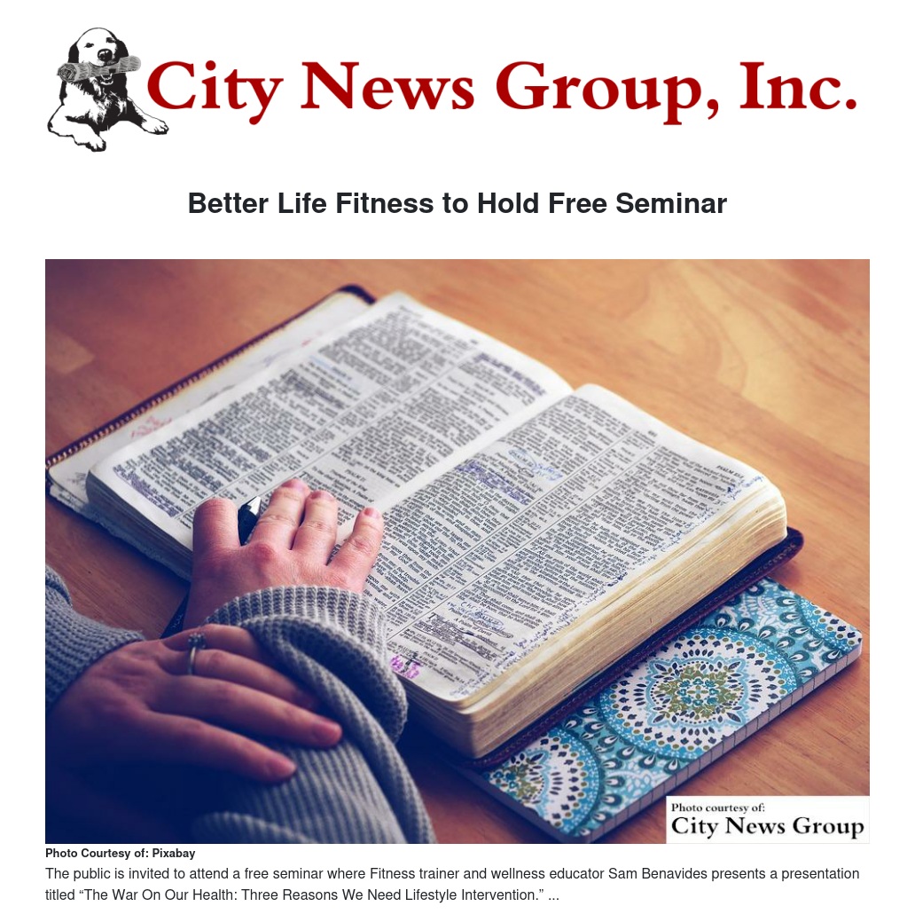 REDLANDS>> Fitness trainer and wellness educator Sam Benavides is inviting the public to attend a free seminar where he is presenting a presentation titled “The War On Our Health: Three Reasons We Need Lifestyle Intervention.”