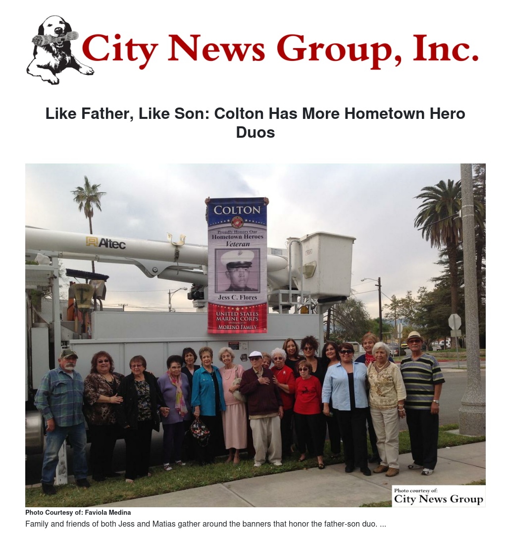 His son, Jess Flores, enlisted in the Marine Corps with four of his friends in 1971 and actively served for two years where he received/transmitted top secret coded communications. Just like his father, Flores stuck to the same career path and is still working in communications. He served his last two years in reserve.