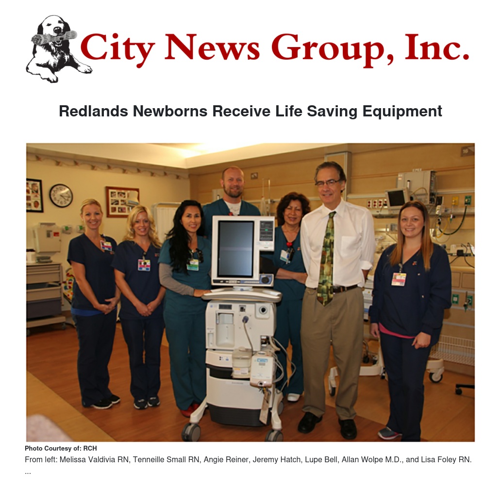 Ten percent of the babies born at Redlands Community Hospital are treated in the NICU and 22% of those patients need ventilator support. As the area's only level 2 NICU, the equipment will help with patient