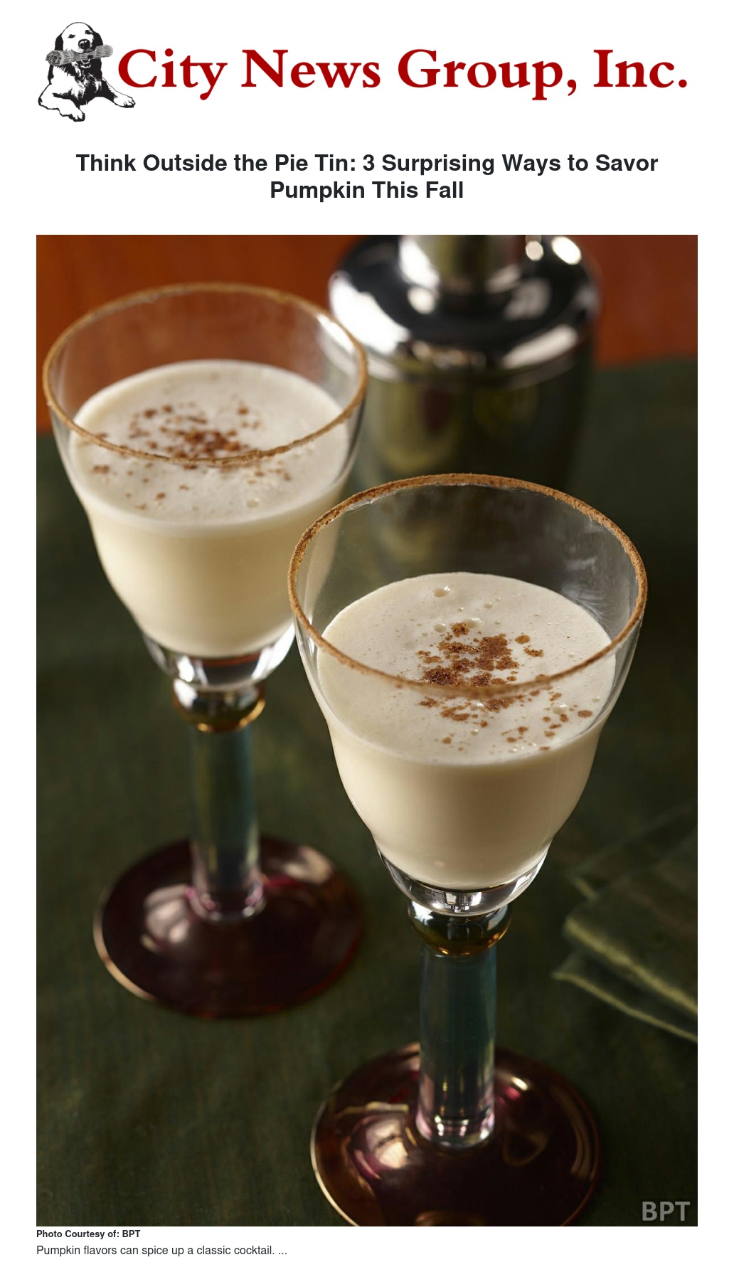 Pumpkin can also be a spirited treat, making its appearance in classic cocktails such as a Pumpkin Martini. For an eggnog guests won't soon forget, try this recipe from Safest Choice Eggs: