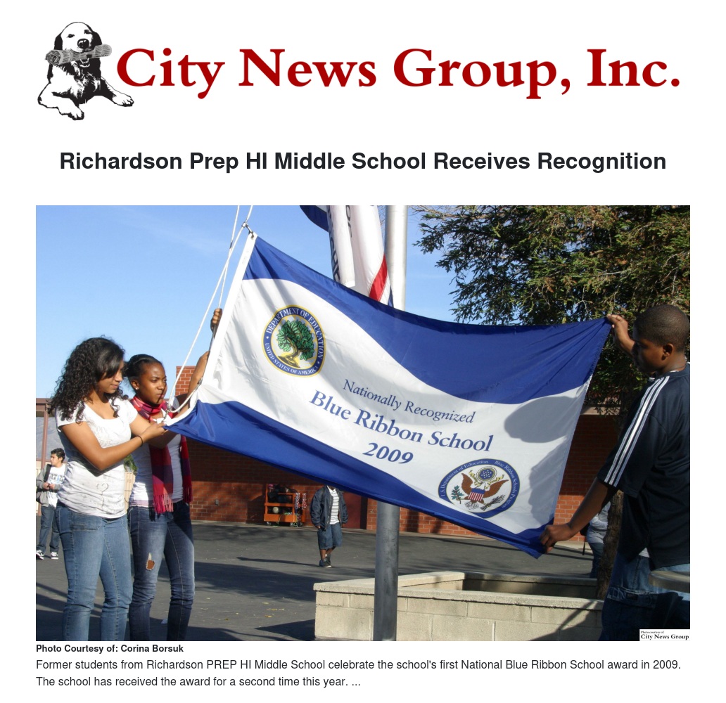 The U.S. Department of Education recognized 329 schools for being exemplary, high-performing schools or exemplary, achievement-gap closing schools — the only two ways to become a National Blue Ribbon School. Richardson PREP HI was honored for being an exemplary, high-performing school, which means it is among the highest-performing schools as measured by state assessments or national tests.