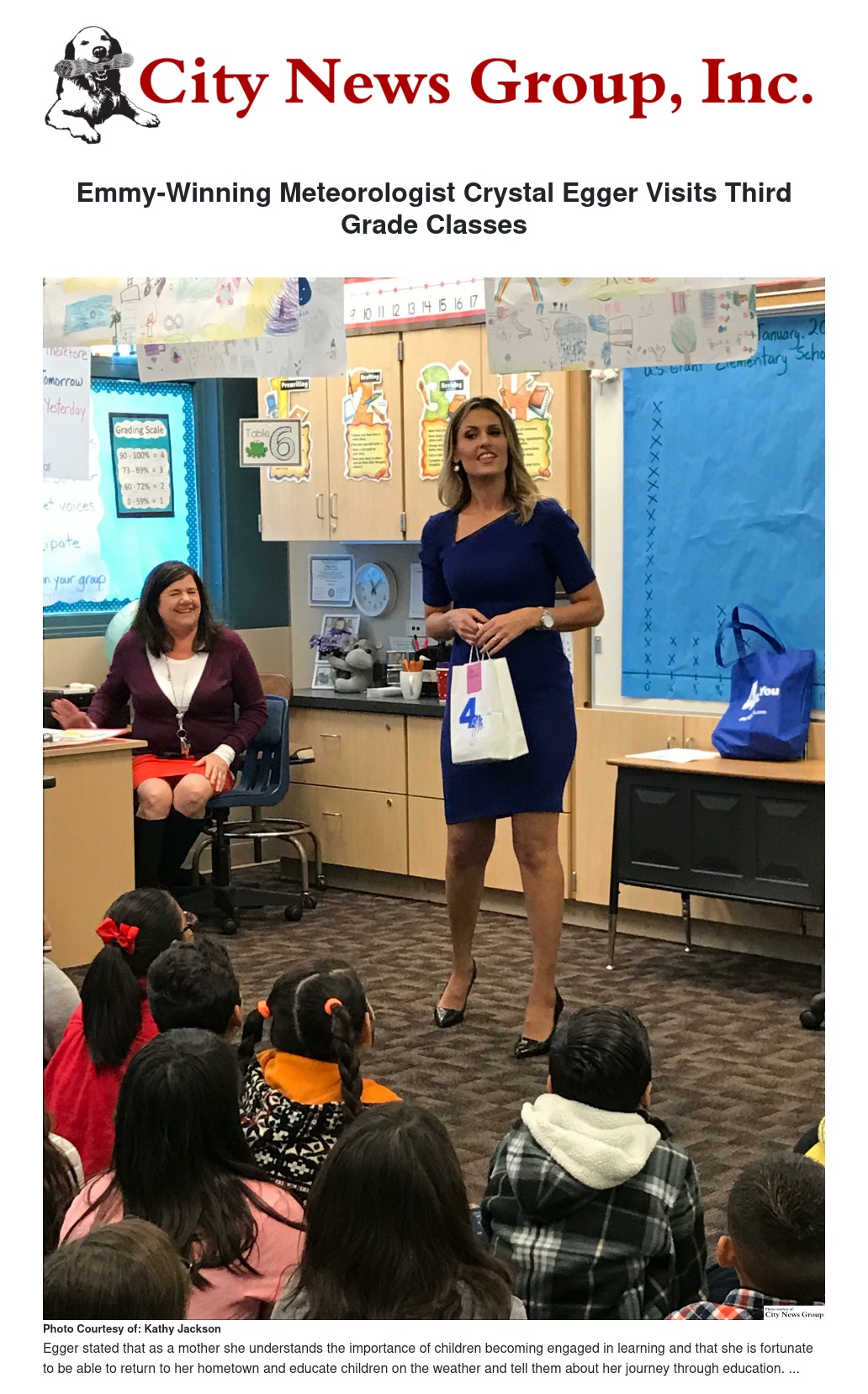 Emmy-Winning Meteorologist Crystal Egger Visits Third Grade Classes