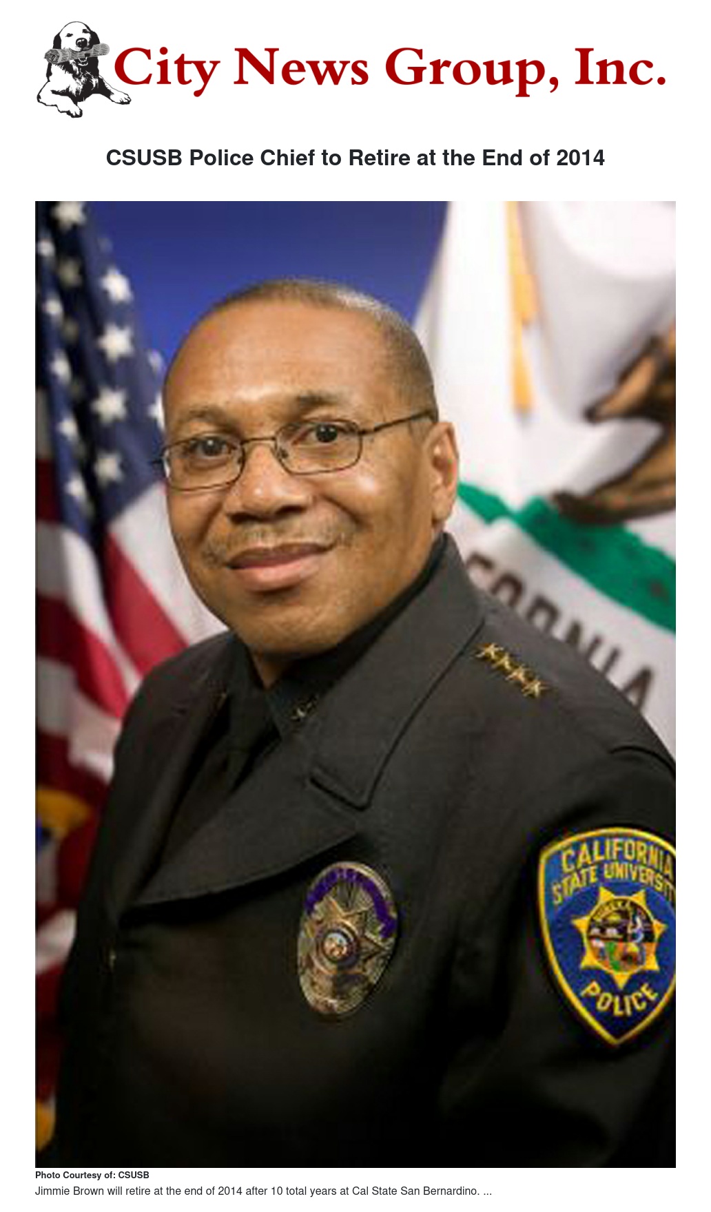 Jimmie Brown, who has served as the Chief of Police for the Cal State San Bernardino (CSUSB) Campus Police Department for the past seven years, has announced his plans to retire at the end of December.