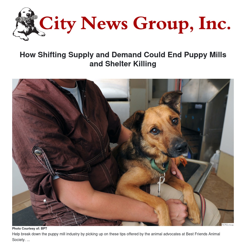 "Each year, approximately 10,000 puppy mills across the country produce hundreds of thousands of dogs to be sold online and in pet stores throughout the nation," says Elizabeth Oreck of Best Friends Animal Society. "Meanwhile, approximately 3 to 4 million animals are killed in animal shelters annually as a means of population control. It's a sad illustration of the concept of supply and demand. If people would stop buying pets produced in puppy mills, and start adopting from shelters, we could put this industry out of business - and save every last homeless dog."