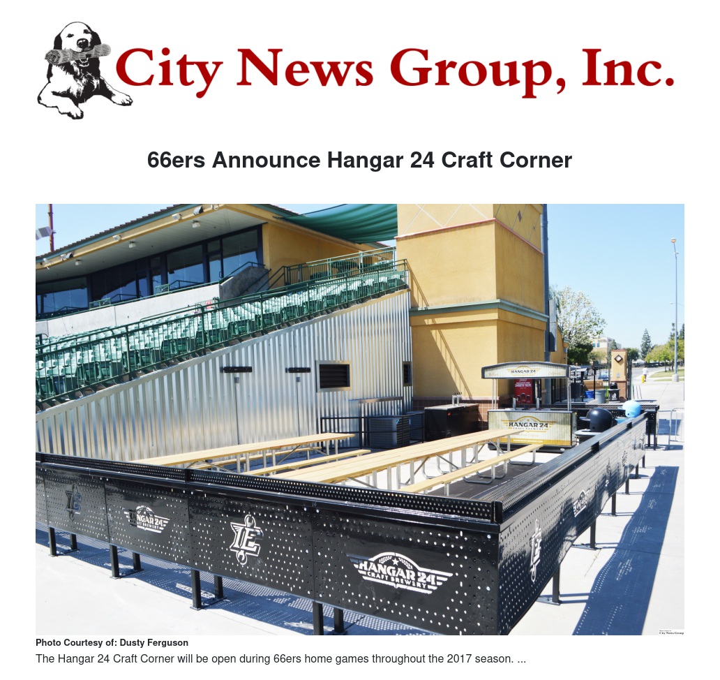 SAN BERNARDINO>> The Inland Empire 66ers of San Bernardino Professional Baseball Club announced a new feature at San Manuel Stadium in conjunction with long-time community partner Hangar 24 Craft Brewery. The Hangar 24 Craft Corner will be open during 66ers home games throughout the 2017 season.