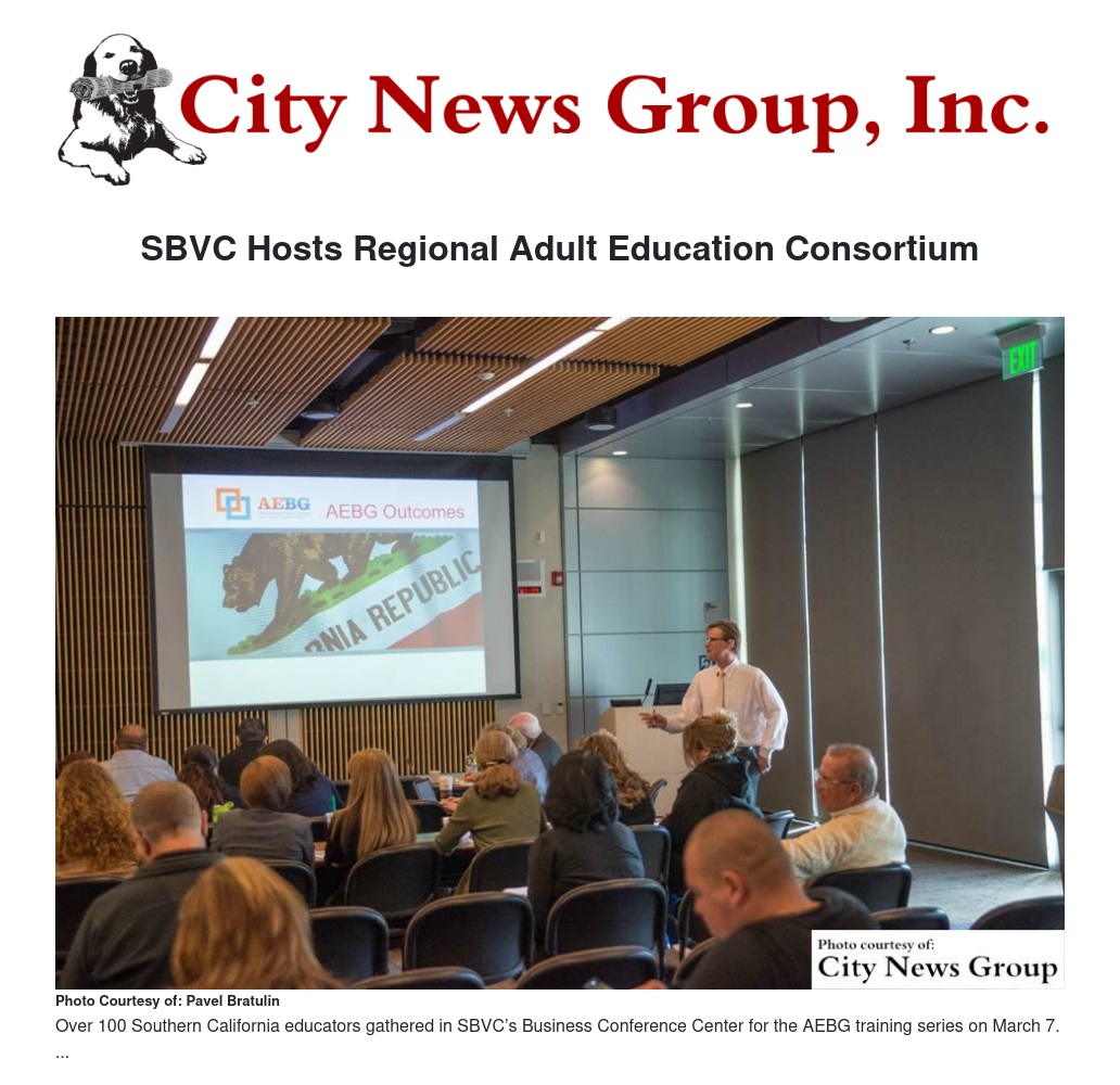 “It was exciting to host the event for the state AEBG office,” said Emma Diaz, SBVC's AEGB Administrator. “We had 14 regional consortia from throughout the Southland represented at the event.”