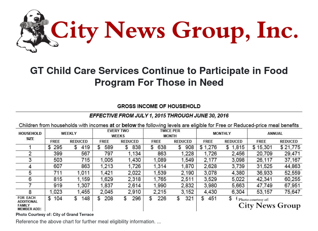 The City of Grand Terrace’s Child Services Department will provide affordable meals to infants and children as part of the federal government’s Child and Adult Care Food Program or CACFP. The program provides nutritious meals and snacks to economically disadvantaged infants and children as a regular part of their day care.