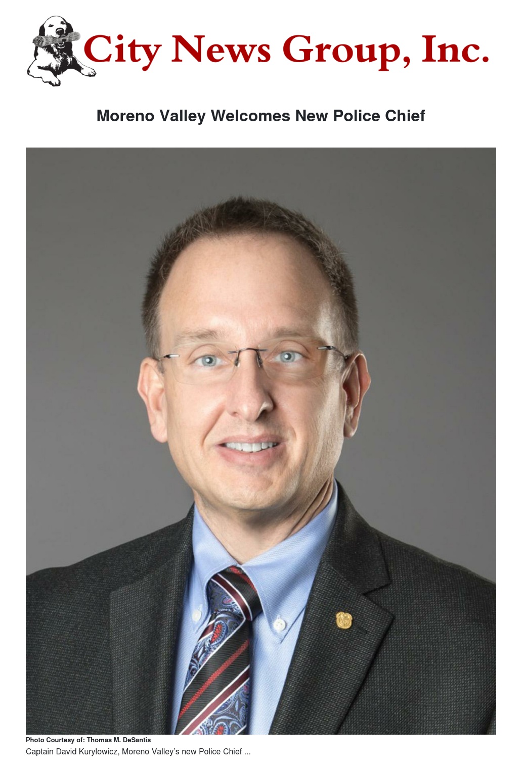 Moreno Valley welcomes Captain David Kurylowicz as the City’s new Police Chief. He assumes this key leadership position with more than 25 years of law enforcement experience with the Riverside County Sheriff’s Department.