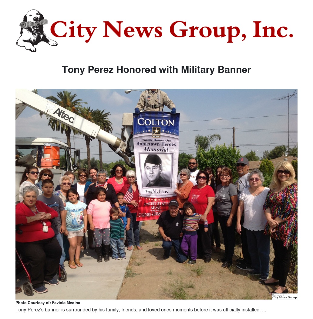 Coltonite Tony Perez was honored by his friends, family and the city with his very own Military Banner Installation Ceremony on April 22.