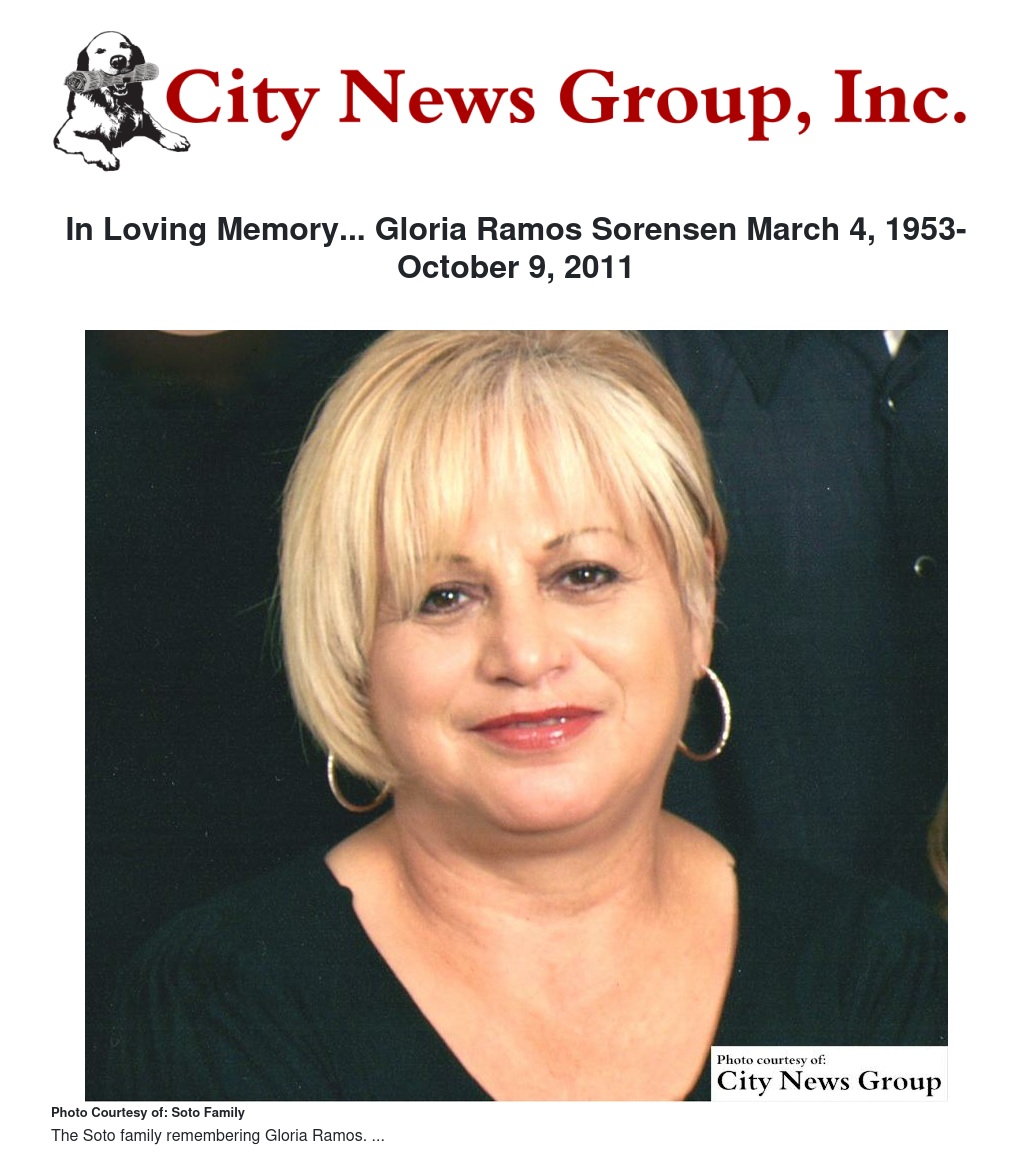 In Loving Memory... Gloria Ramos Sorensen March 4, 1953-October 9, 2011