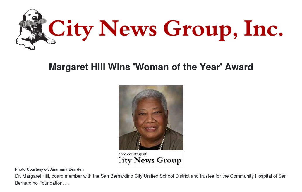 Hill is currently a board member with the San Bernardino City Unified School District and trustee for the Community Hospital of San Bernardino Foundation. She began teaching at San Bernardino High School in 1971 and retired in 2012 as the assistant superintendent of Administrative Services. Additionally, she continues to be involved in the community with memberships to several San Bernardino organizations including the Kiwanis of Greater San Bernardino, Highland’s Woman’s Club and more.
