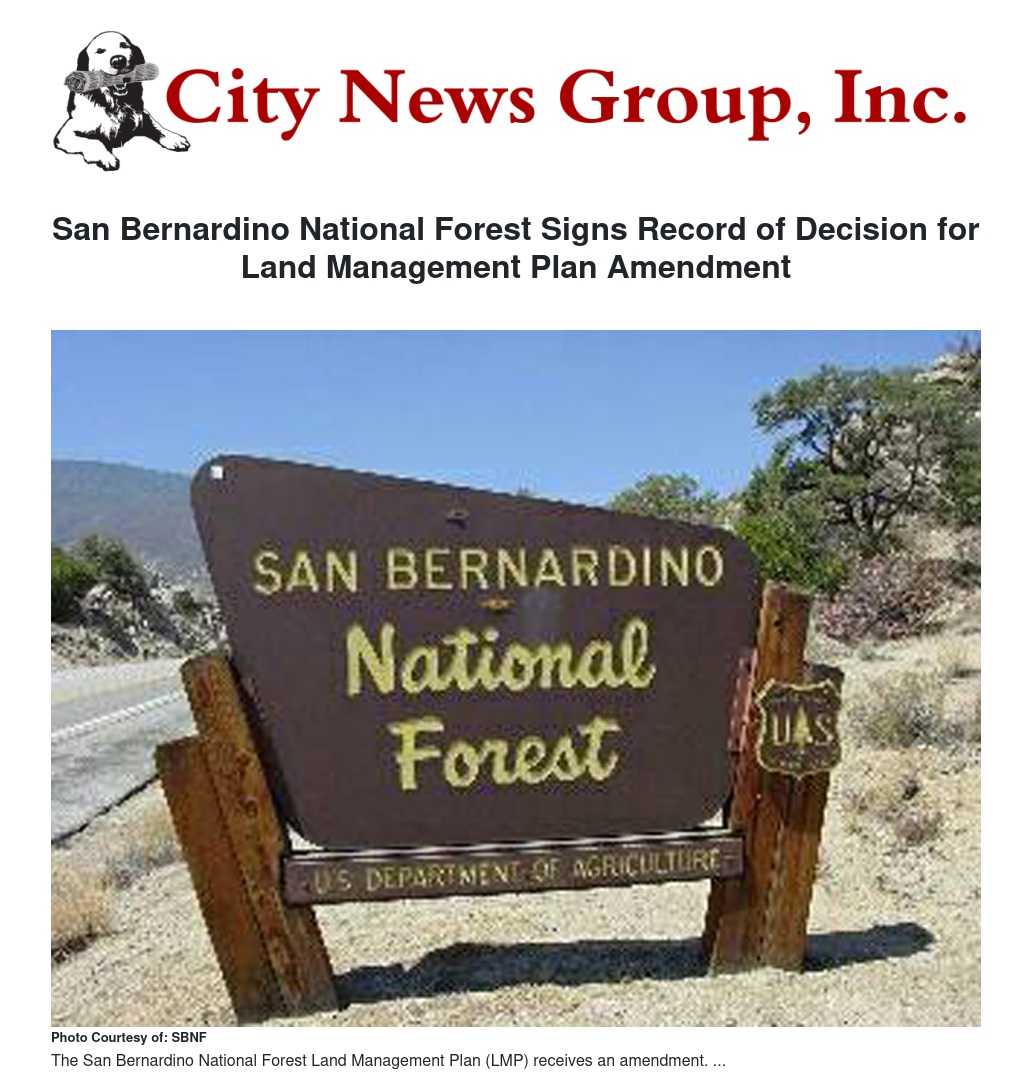 San Bernardino National Forest Signs Record of Decision for Land Management Plan Amendment