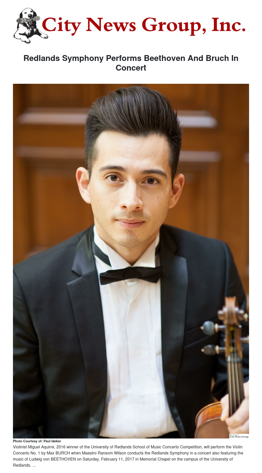 Redlands Symphony Performs Beethoven And Bruch In Concert