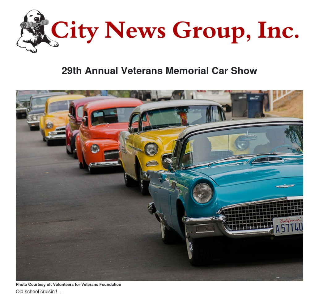 The Veterans Car Show is a one day event on October 13, 2019 at the Sylvan Park in Redlands, CA. The goal of this event is to raise funds for the Volunteers for Veterans Foundation and to say thank you to our service members, both active and retired.