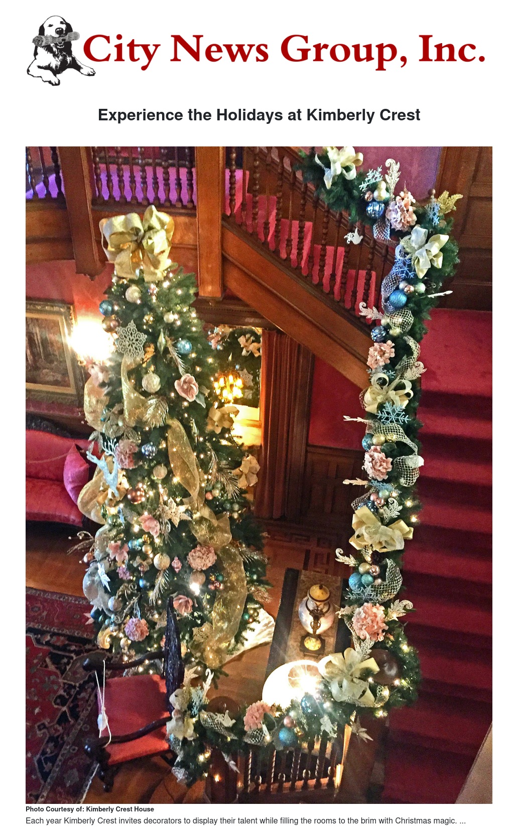 In addition to regular tours there are special opportunities to see how beautiful Kimberly Crest is when decorated for the holidays: