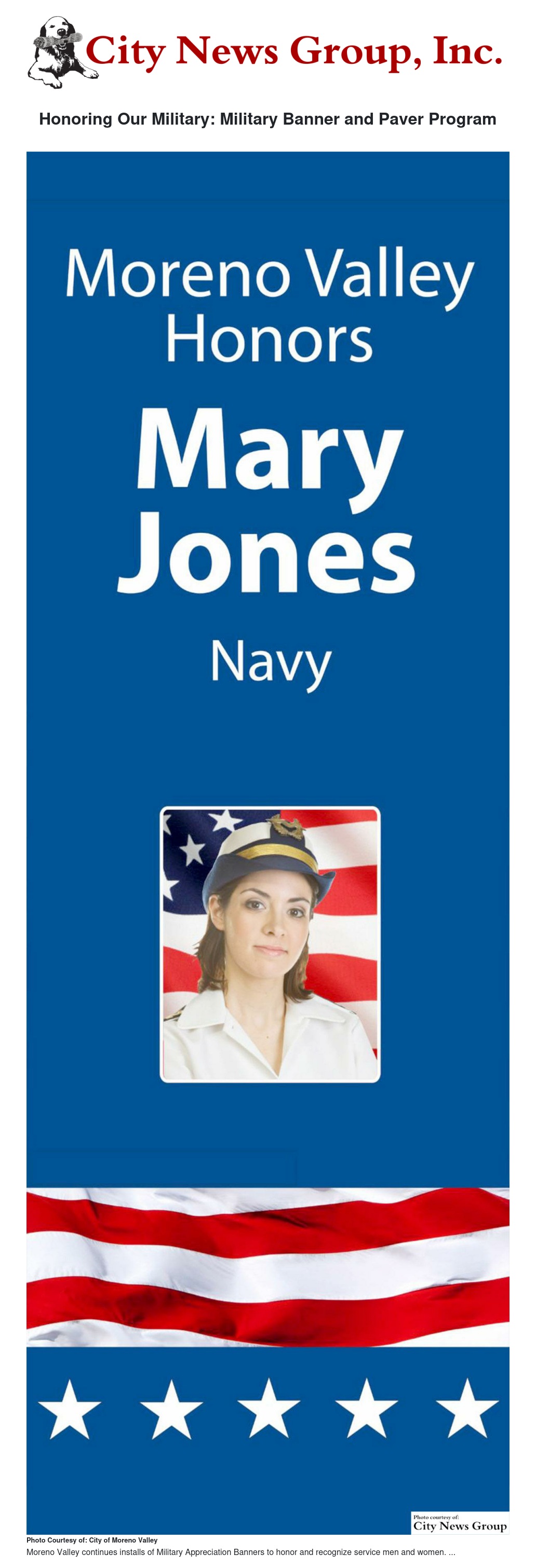 Qualifications for a banner include: Honorees must be active duty military service personnel who are residents of Moreno Valley, who have immediate family residing in Moreno Valley, or who have graduated from a Moreno Valley high school.