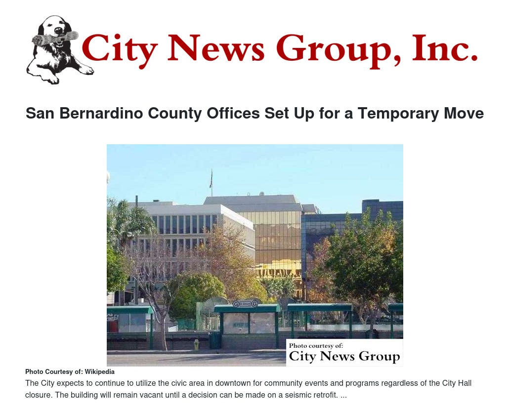 SB/LL/GT/CC/RED>> The city of San Bernardino departments located at City Hall are moving to office buildings located a quick walk or short drive from City Hall.